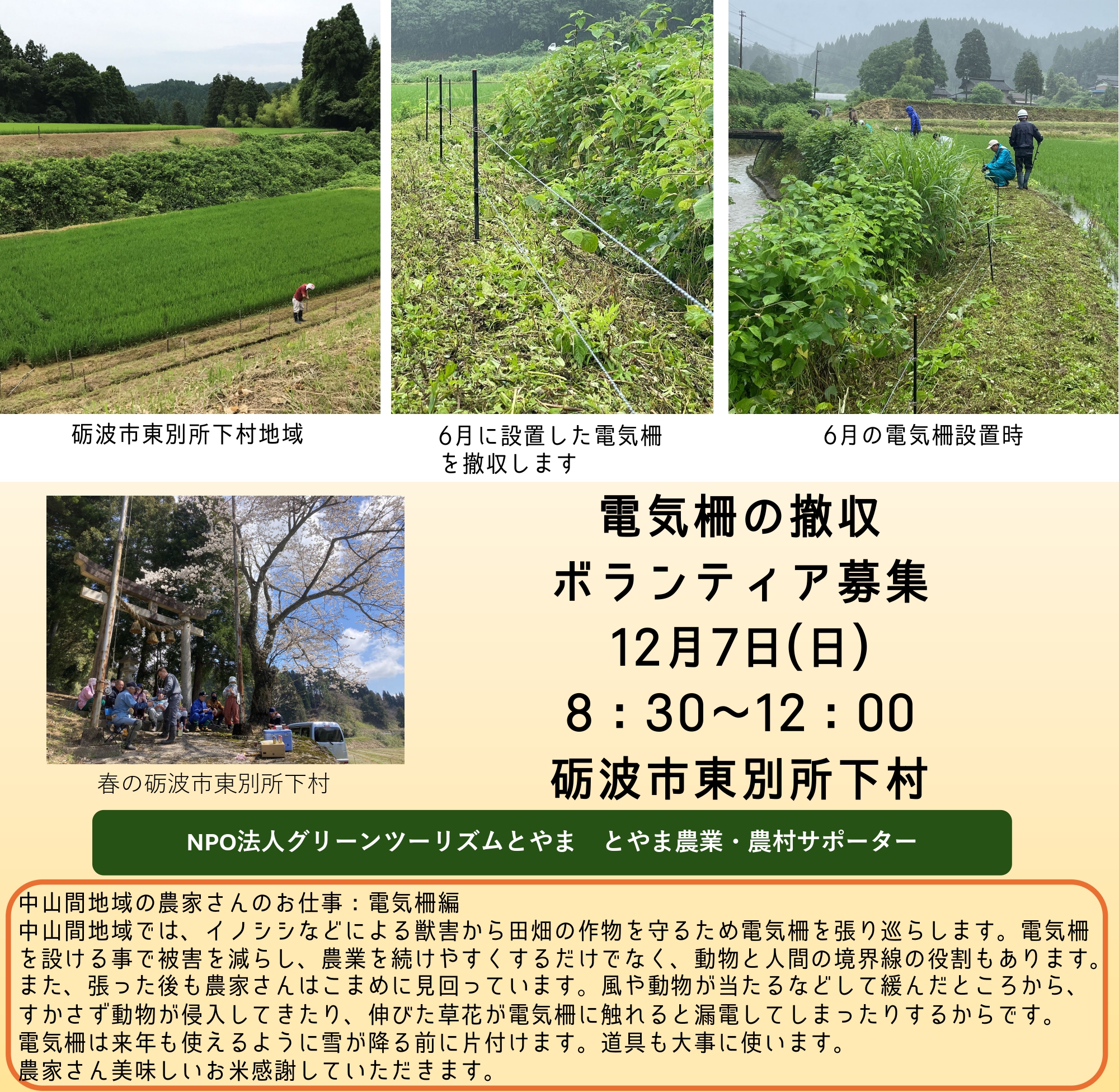 12月7日(日) in砺波市東別所下村 電気柵の撤収作業