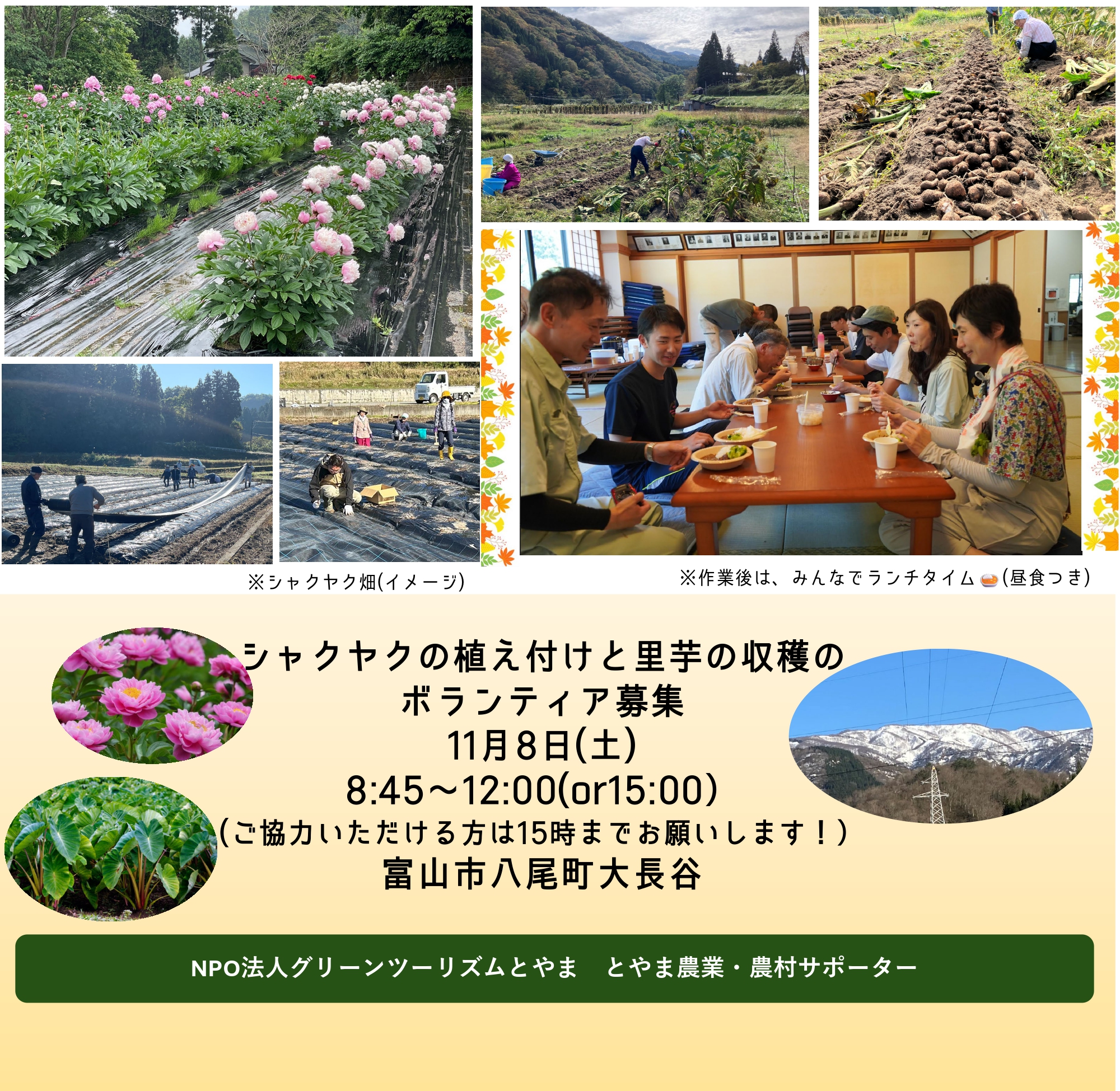 「シャクヤクの植えつけと里芋の収穫」in 富山市八尾町大長谷