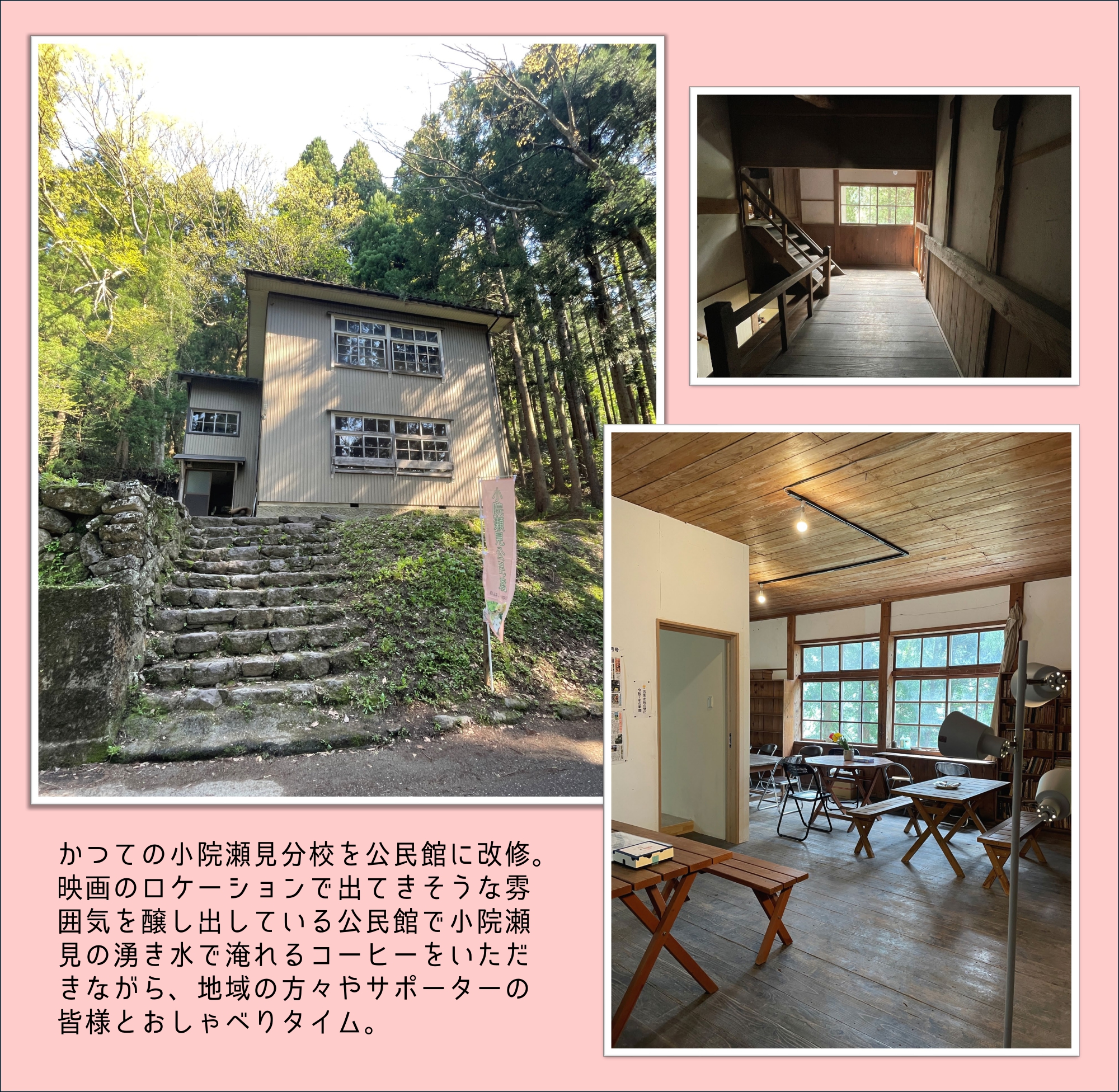 お時間が許す方は、公民館(旧小学校跡の木造校舎です)で自慢の湧き水コーヒーをどうぞ
